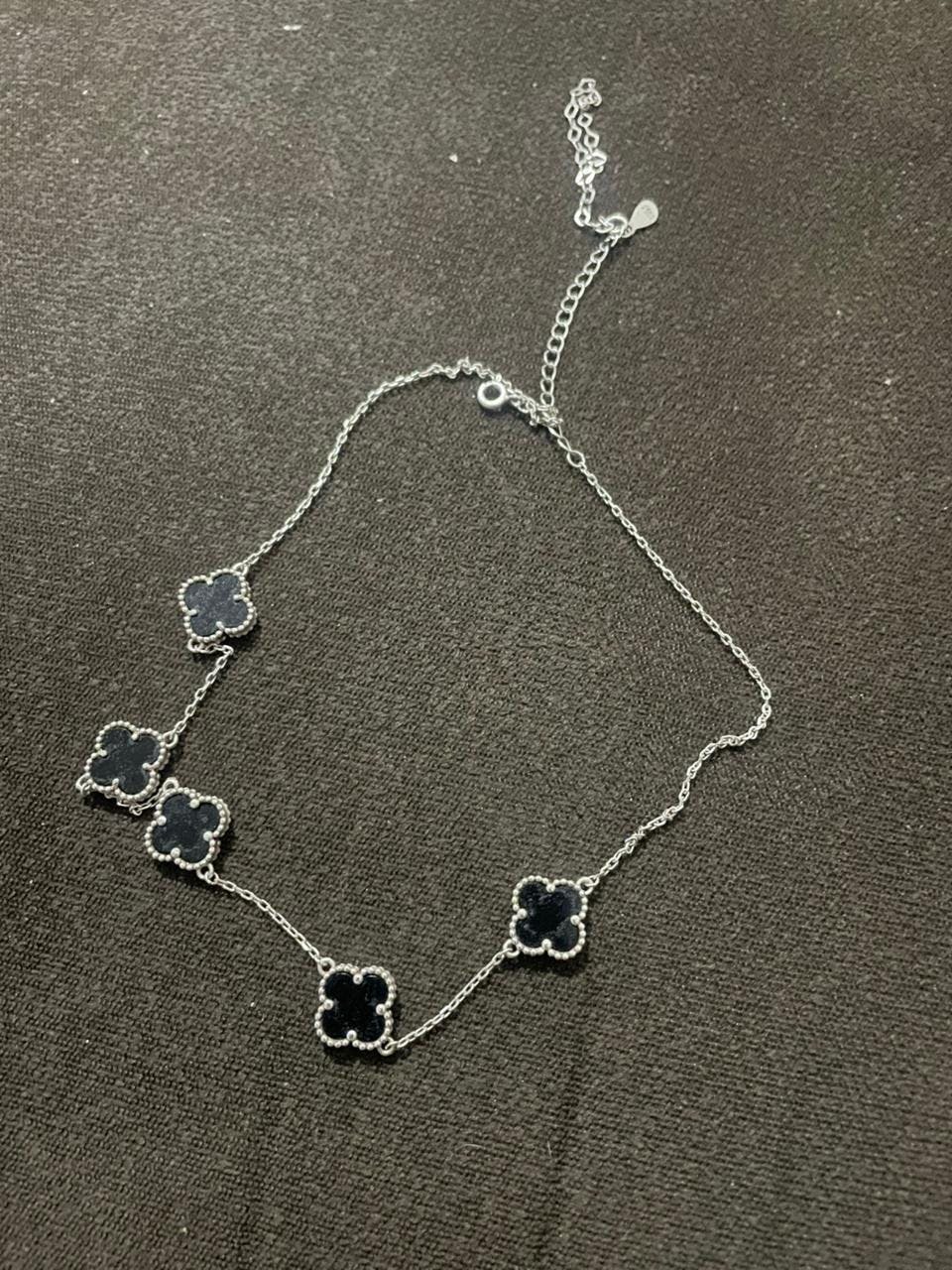 Colar 5 Trevos Madrepérola Preta em Prata 925